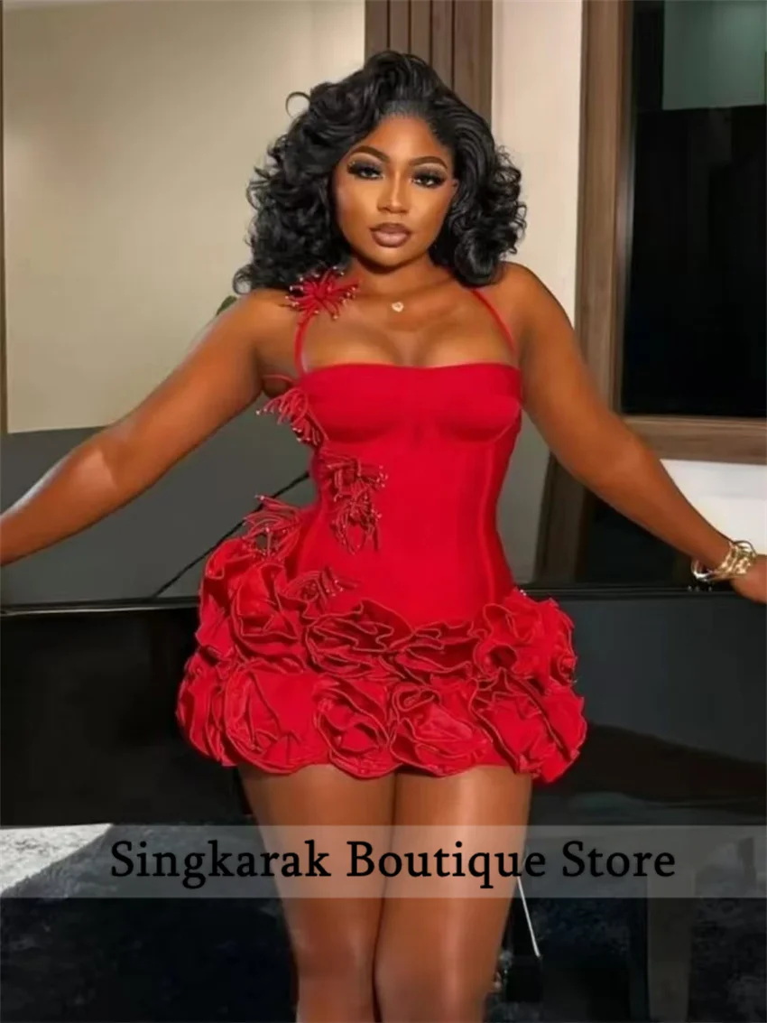 ↑Red Birthday Dresses Baddie Black Girl Halter Neck Mini Prom Dresses Sweertheart Ruffles Wedding Party Dress Customized - TopDealBox