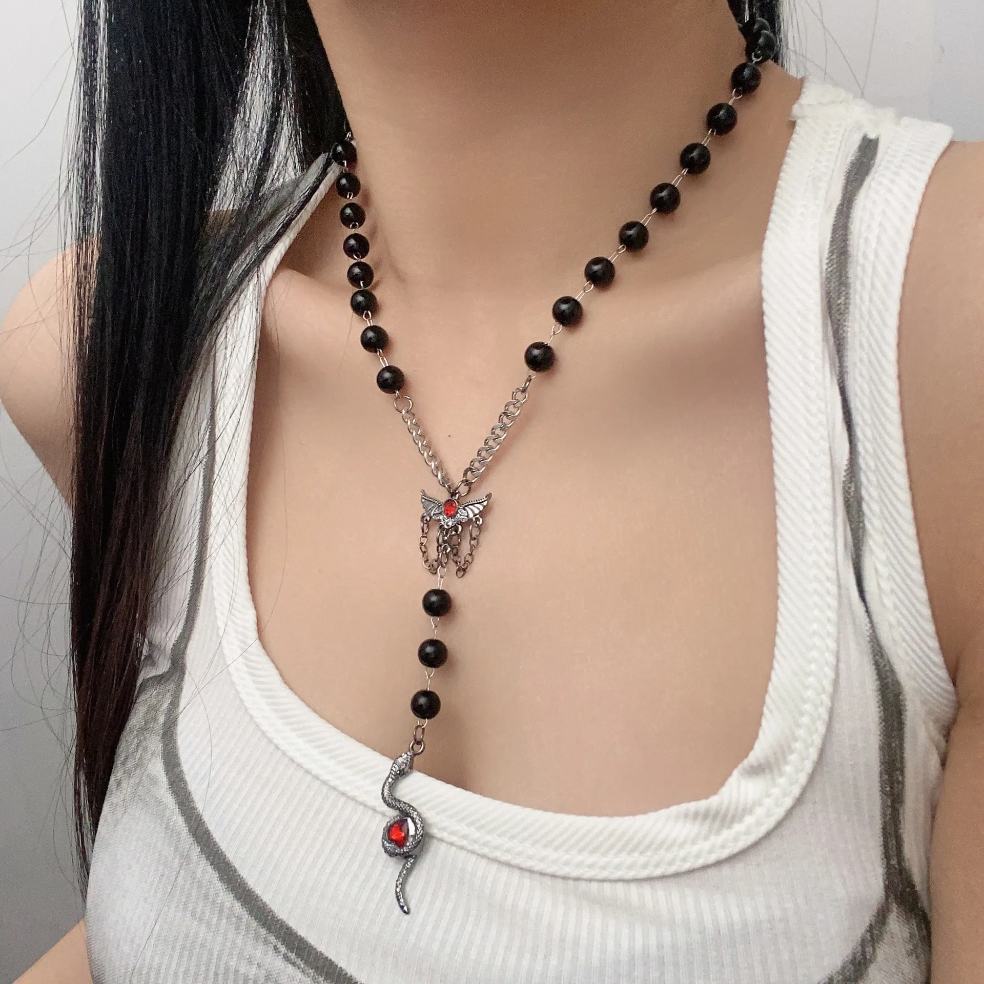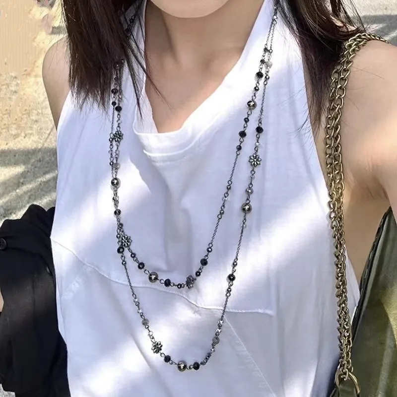 ↑Retro Double Layer Chain Necklace Women's Bohemian Spicy Girl Vintage Long Ethnic Style Colorful Flower Beaded Sweater Chain - TopDealBox