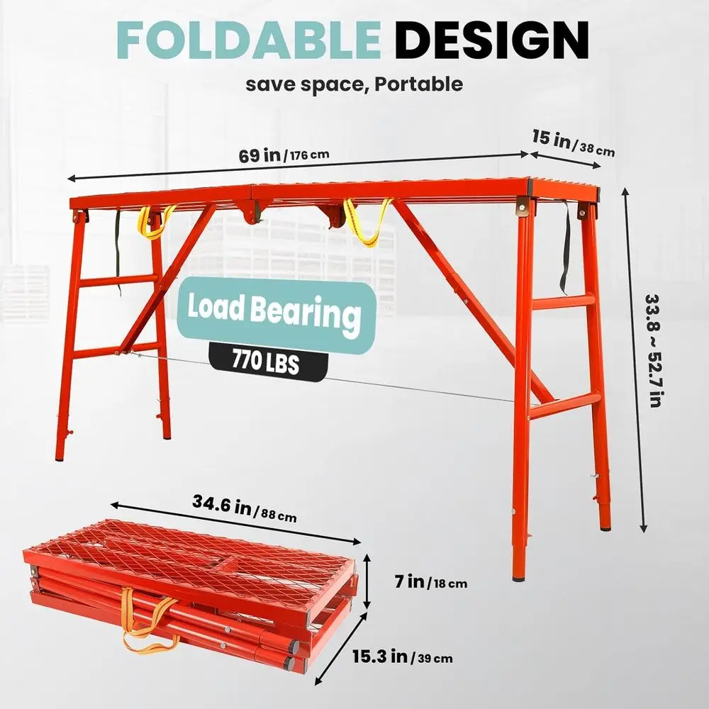 ♡Quick viewFoldable Scaffolding Platform, 69'' × 15'' Adjustable Height Work Table with Anti-Slip Grid, Heavy-Duty 1500LBS Load Scaffolding195.65 USDUSD 4482.28Hot