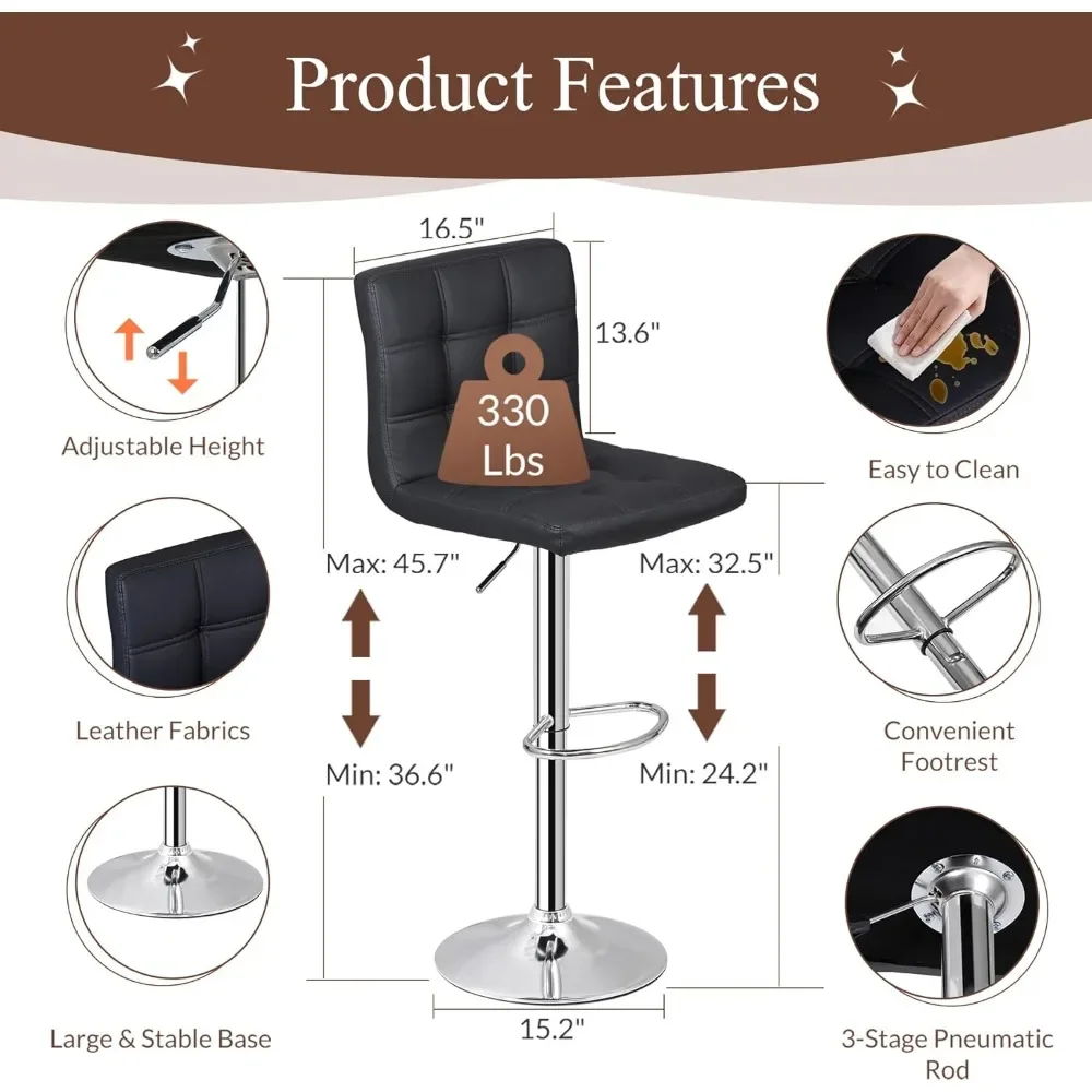 ↑Set of 4 Adjustable Swivel Barstools, Modern PU Leather Kitchen Counter Bar Stools, Square Back Bar Stool Customized - TopDealBox