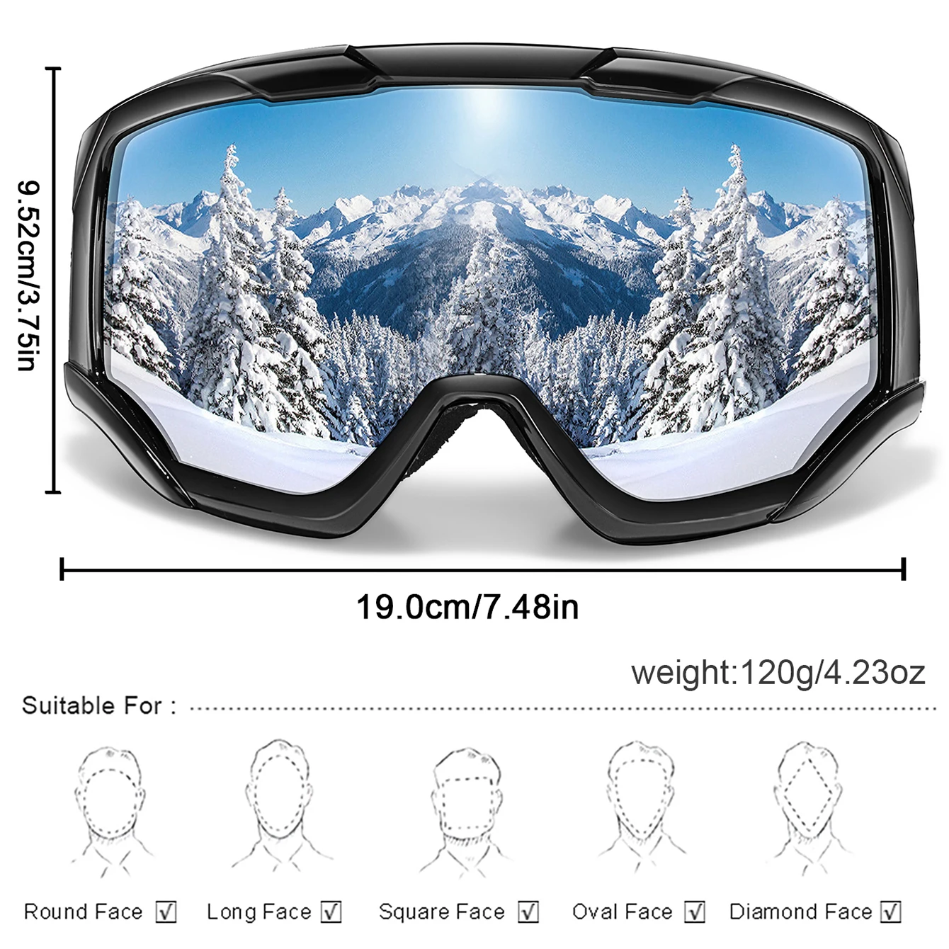↑Snowboard Snowmobile Ski Goggles Outdoor Sport Windproof Double Layers Anti-fog UV400 Eyewer Big Ski Mask - TopDealBox