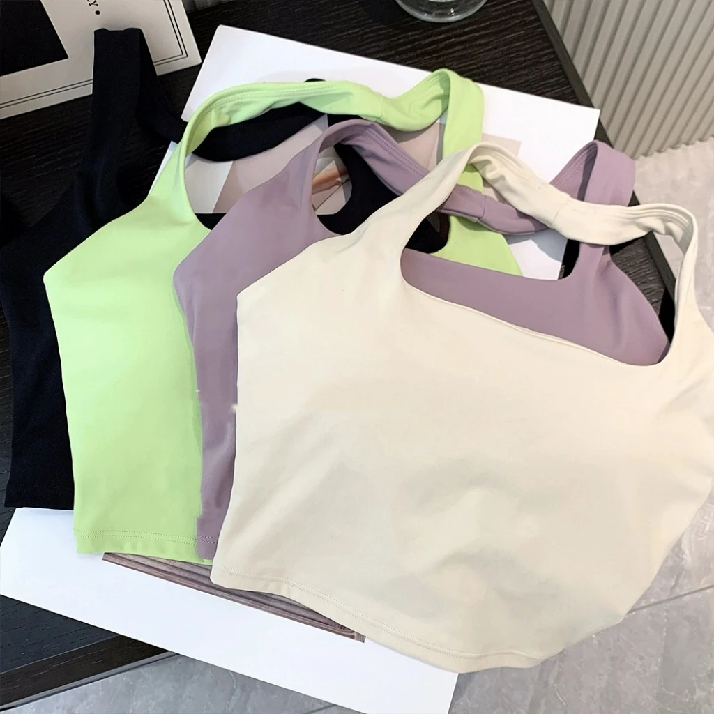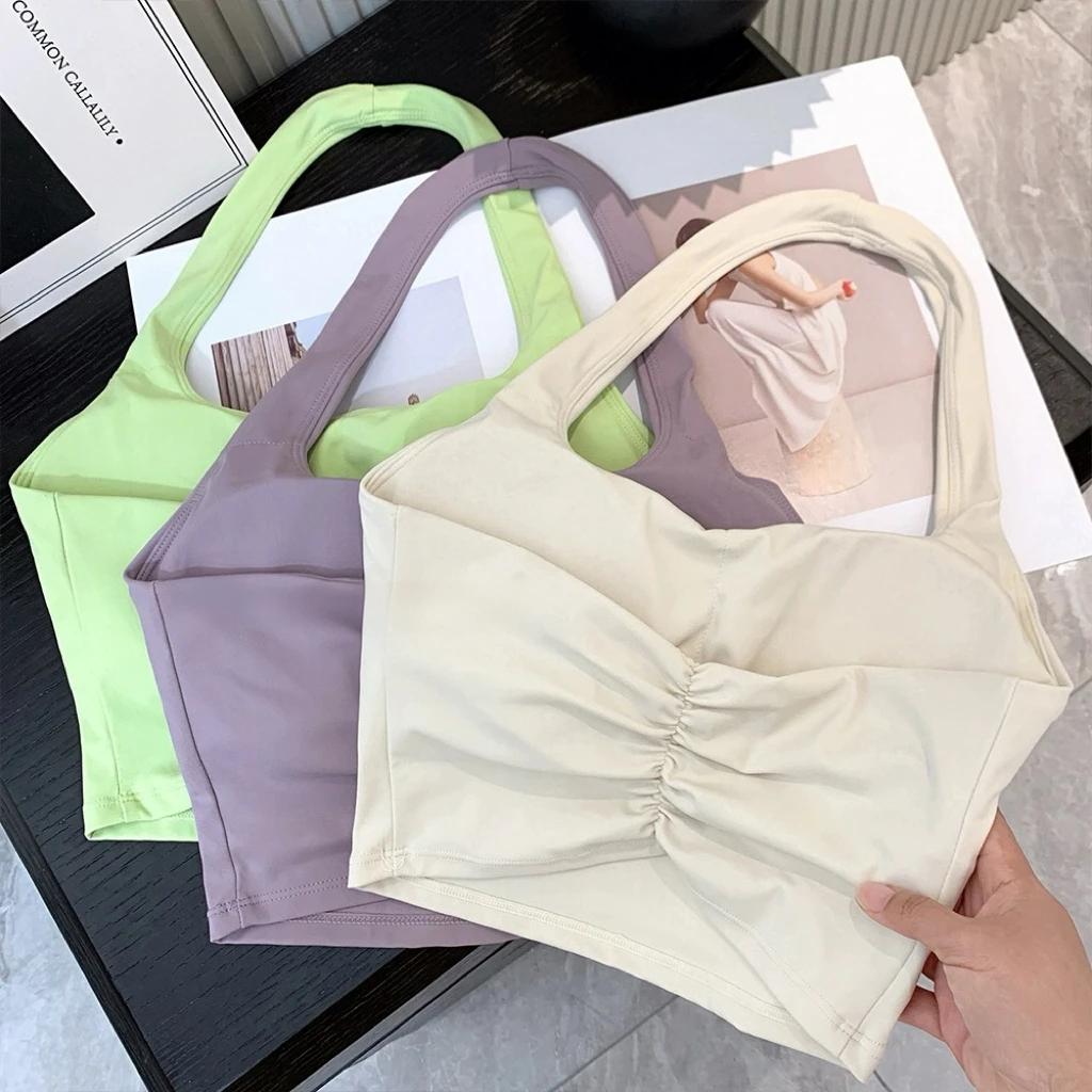 ↑Summer New Sexy Hanging Neck with Chest Pads, Beautiful Back Sports Bra, Women's Light Luxury Fashion, Unique Pleated Sports Bra - TopDealBox