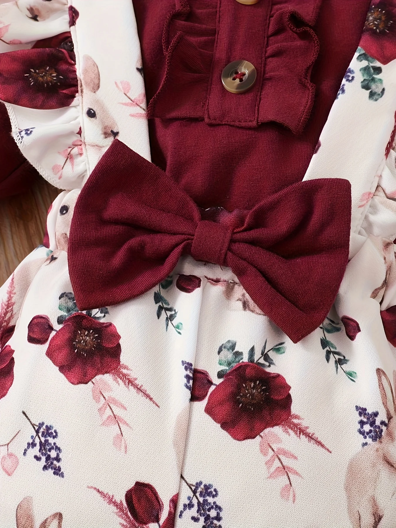 ↑Toddler Baby Girl Outfits, Ruffle Long Sleeve Romper Suspender Pant Set Toddler Baby Girl Cute Outfits - TopDealBox