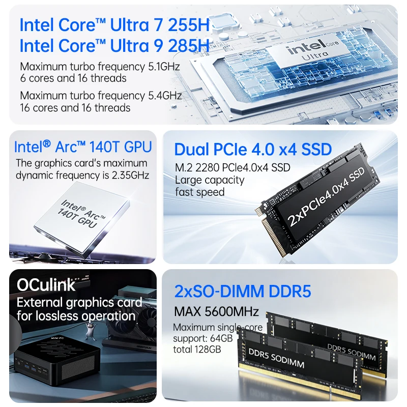↑TOPC OCuLink Mini Gaming PC Intel Core (Ultra 9 285H ES/7 255H ES/5 235H ES) USB4, Dual 2.5G LAN,WiFi 6E, Windows 11 Desktop - TopDealBox