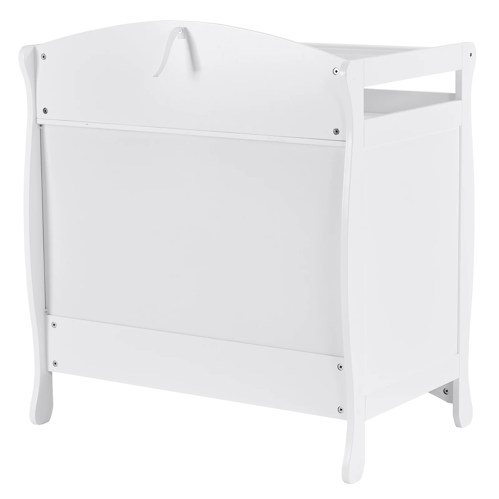 ↑White three-drawer baby crib with safety rail, wooden baby crib with storage combination - TopDealBox