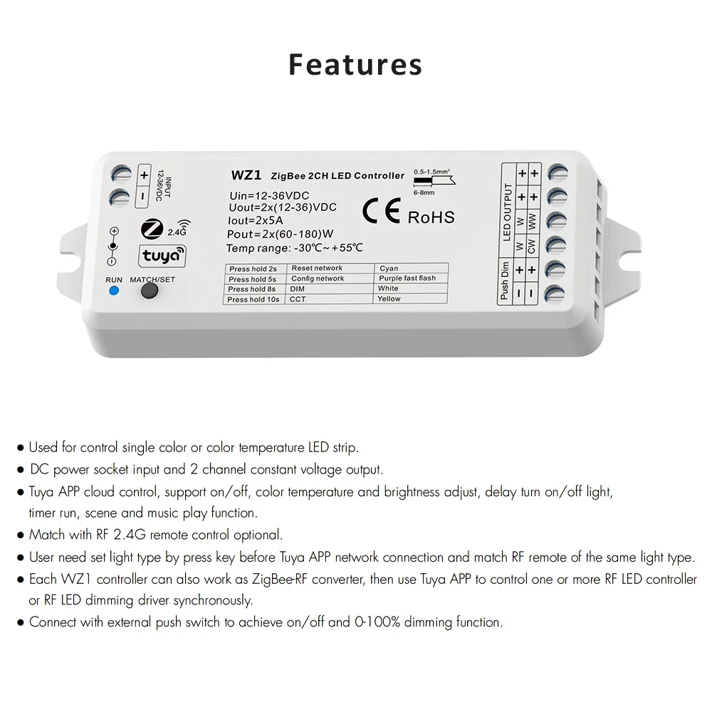 ↑Wifi Tuya Zigbee 2CH LED Controller DC 12V 24V Smart Dimmer with Push Dimming RF 2.4G Remote Control for WW CW CCT Strip Lights - TopDealBox